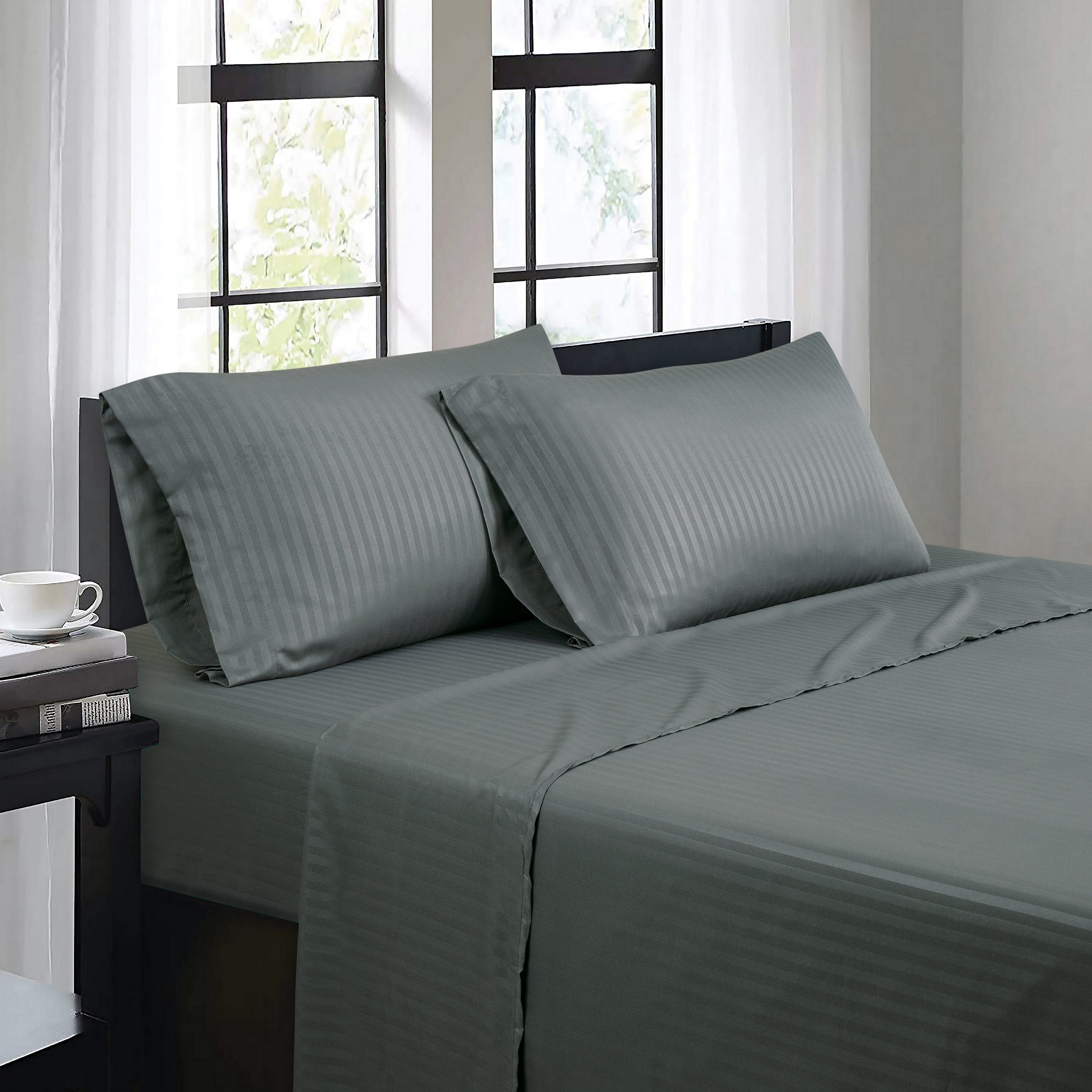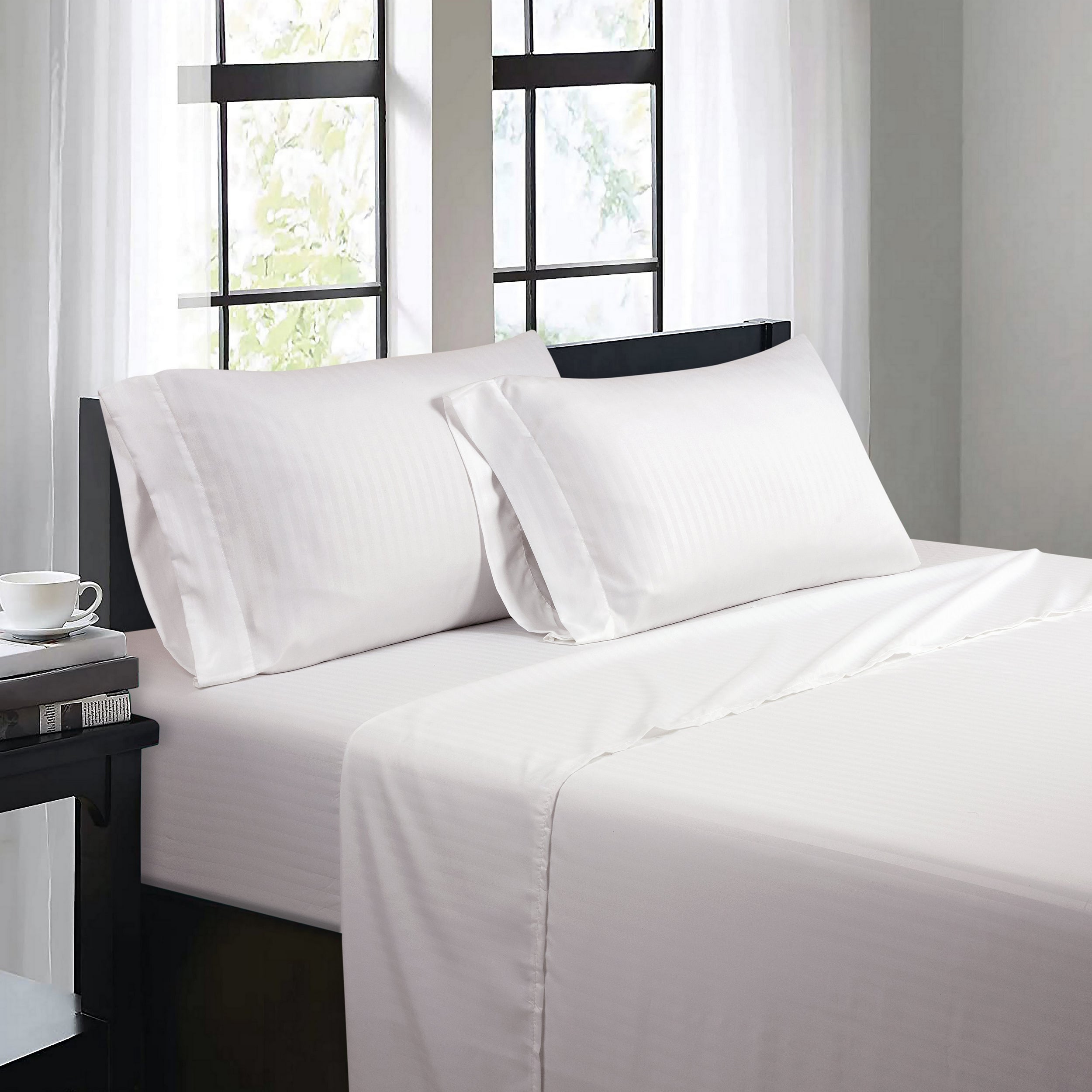 Add a touch of timeless elegance to your bedroom with the Bibb Home Damask Stripe 4-Piece Sheet Set. Designed with a classic damask stripe pattern, this sheet set combines sophistication with everyday comfort. Crafted from soft and durable microfiber, it offers a smooth texture, wrinkle resistance, and long-lasting performance.
