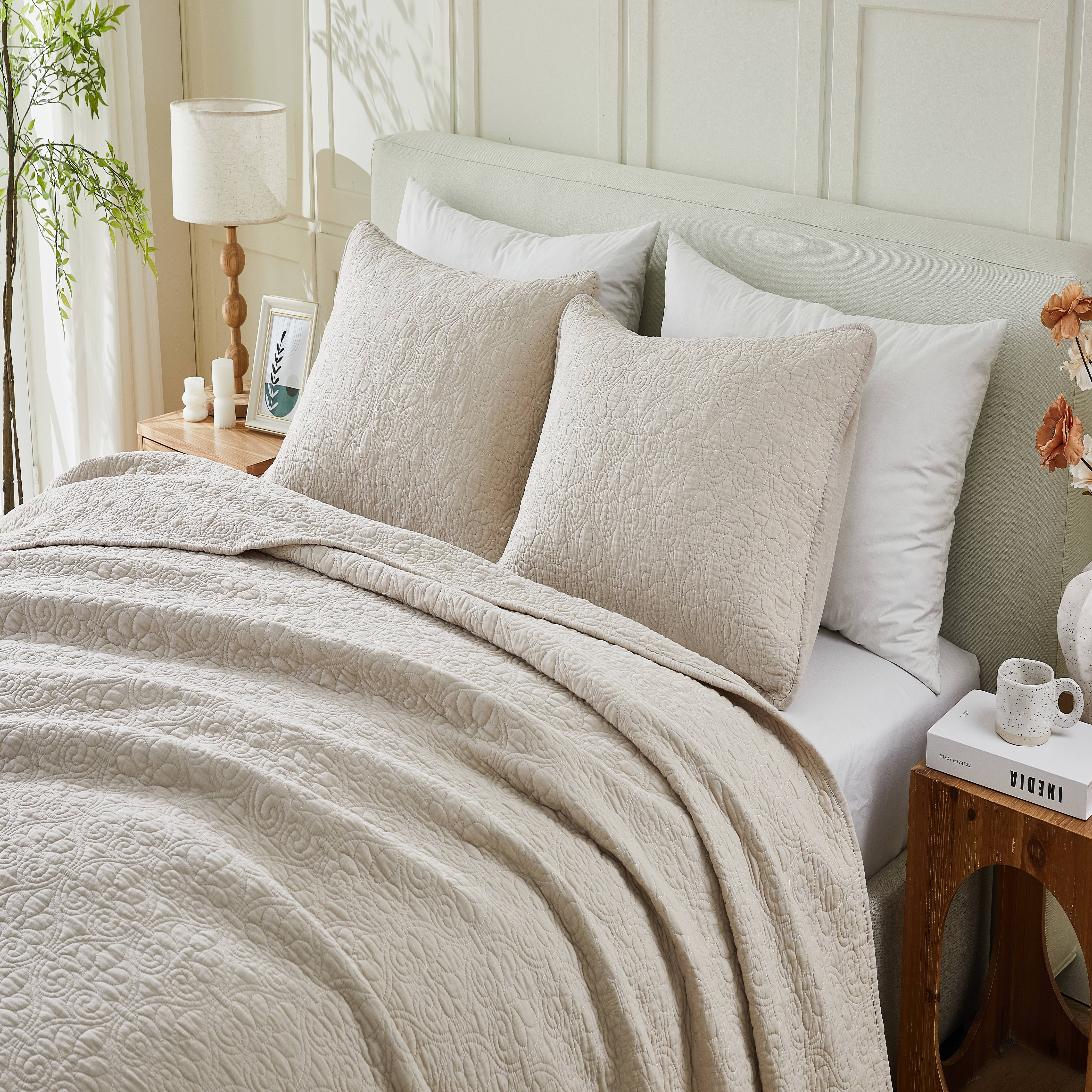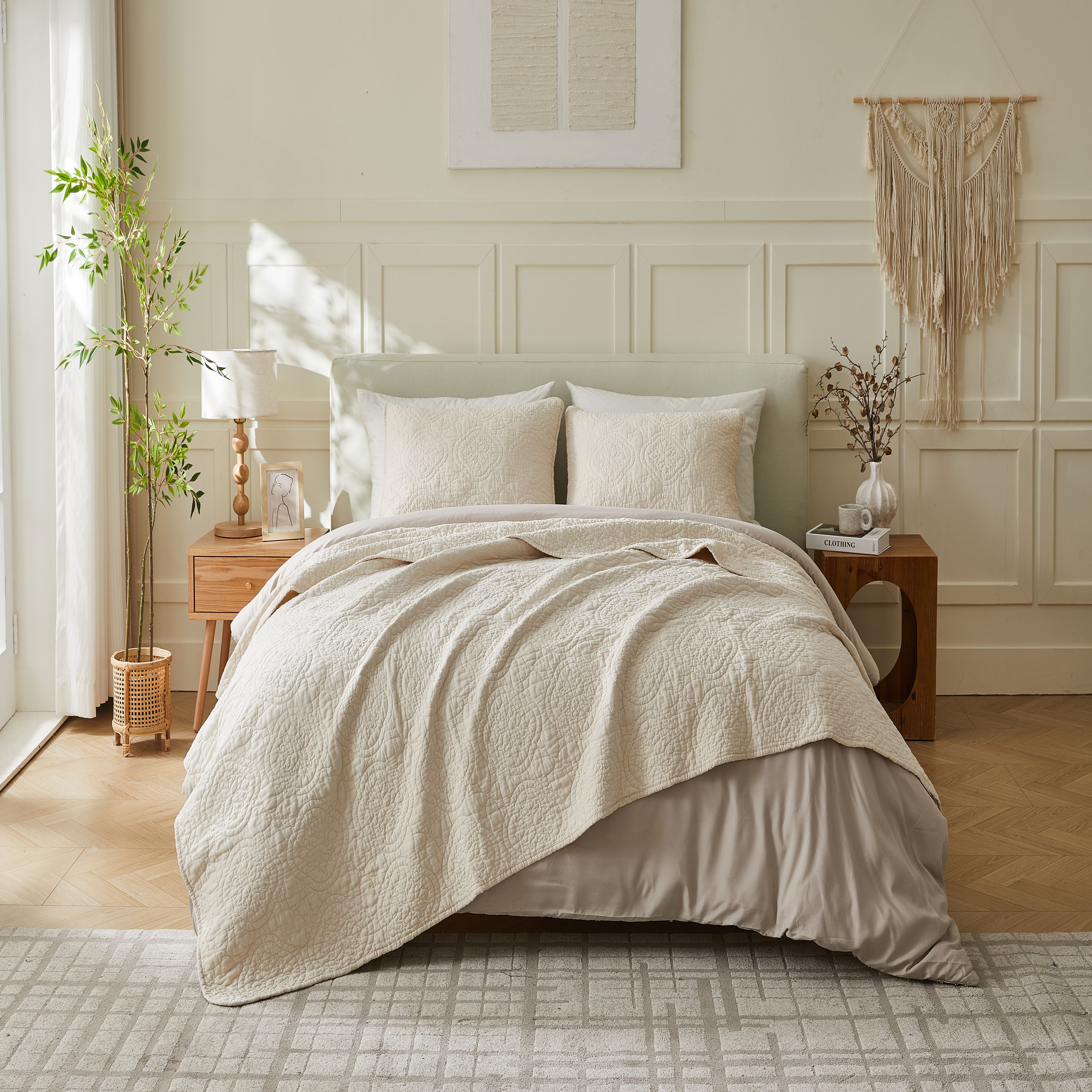 This cotton quilt will freshen up your bedroom decor with minimal effort. The stitched details will create a charming aesthetic that will match your decor. The soft feel of this cotton quilt will keep you comfortable while you sleep. The lightweight feel is perfect for use all year round.