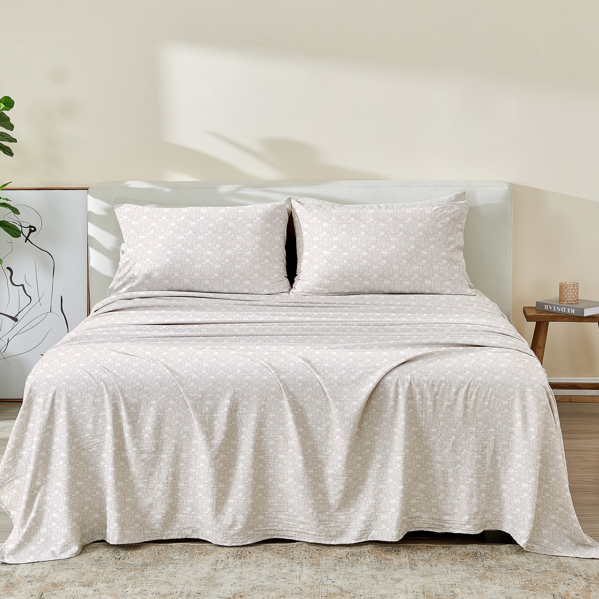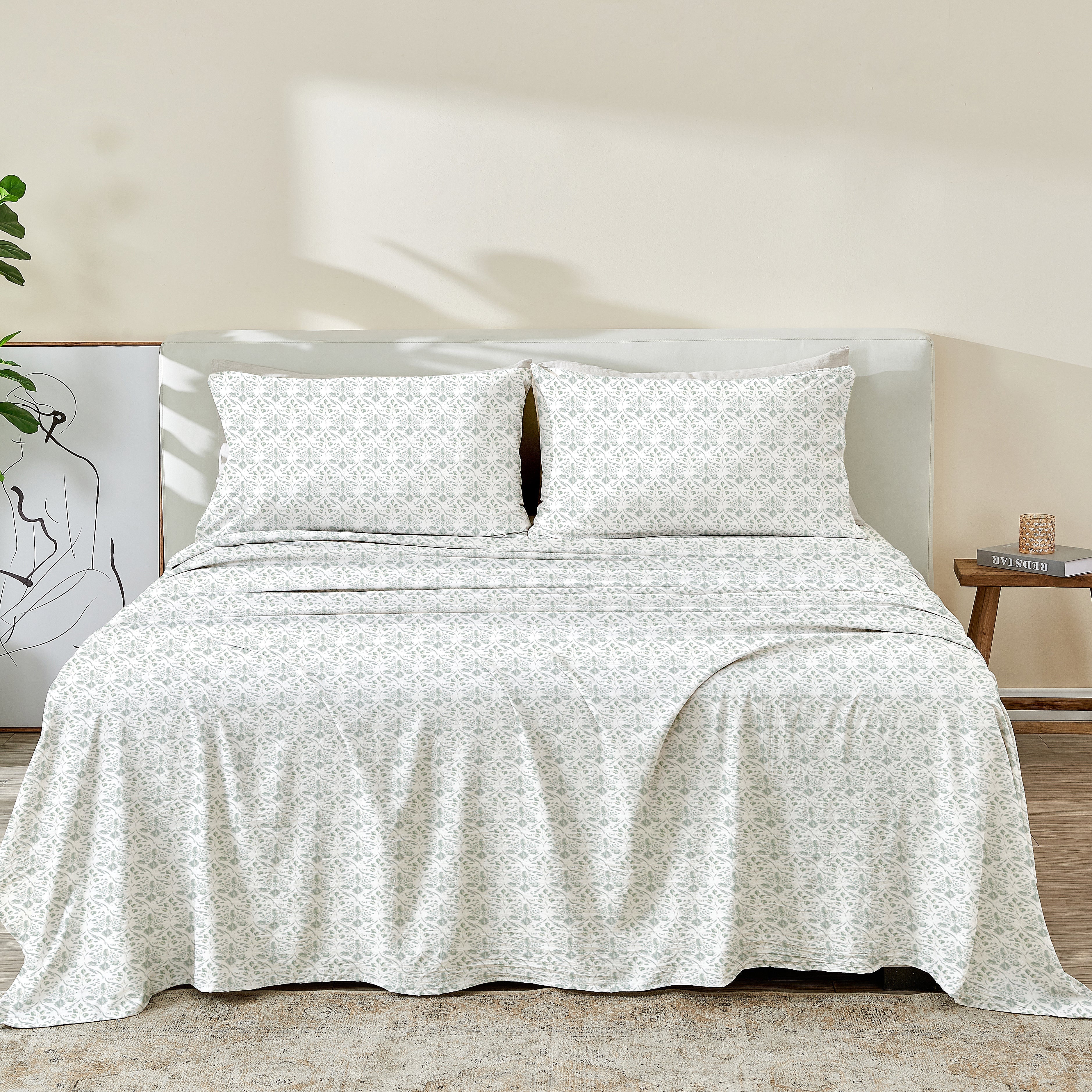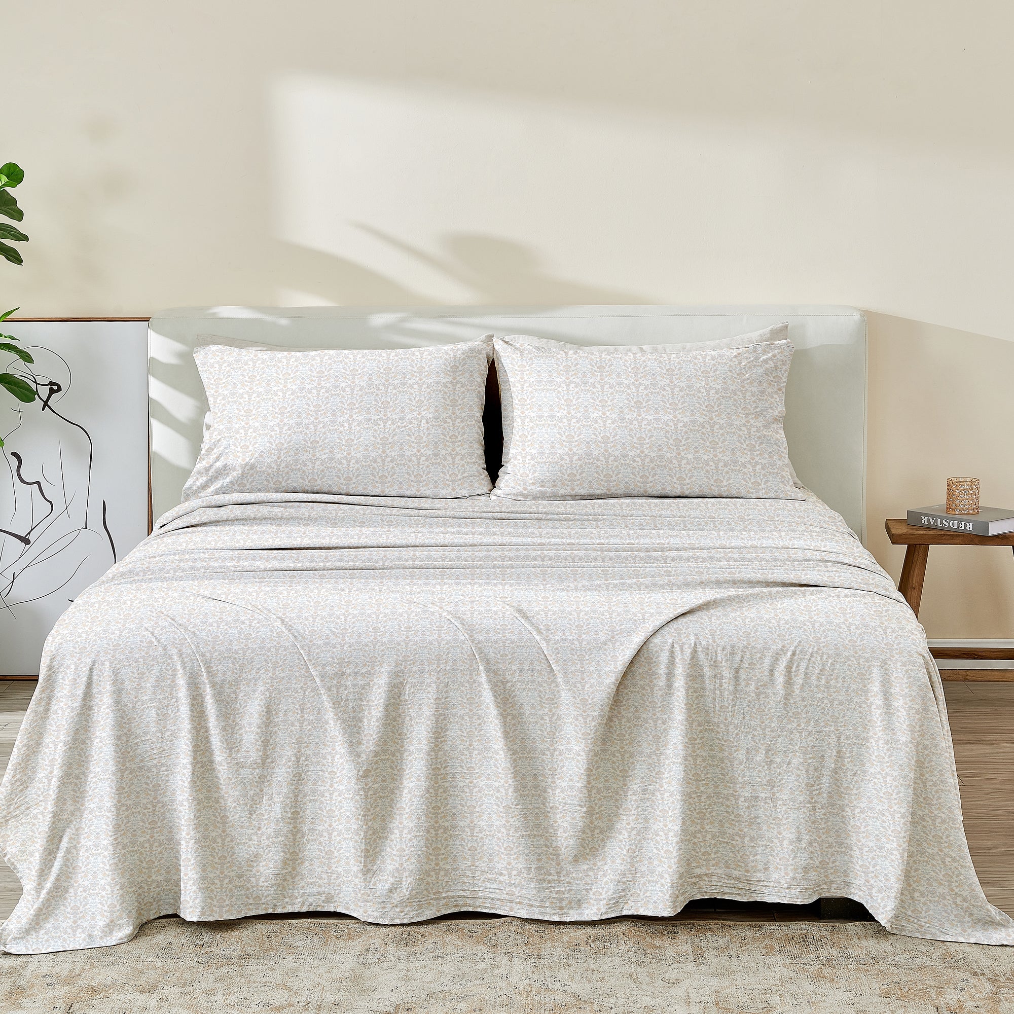 This ultra-soft set features the best of both Microfiber Printed Sheet Set. The ultra-soft feel of the Microfiber will feel luxurious on your skin while offering a lightweight & breathable warmth. The durable properties of cotton will make these sheets last for years to come.